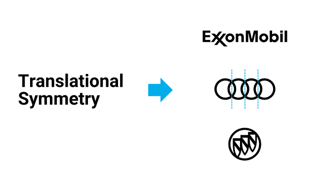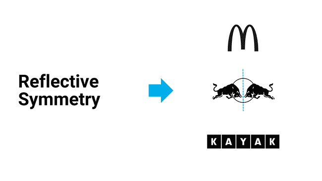 رایجترین نوع تقارن که لوگو را میتوان به دو نیمه آینهای تقسیم کرد. این نوع لوگو حس رسمیت و ثبات ایجاد میکند. برندهایی مثل فولکسواگن نمونه بارز این سبک هستند.